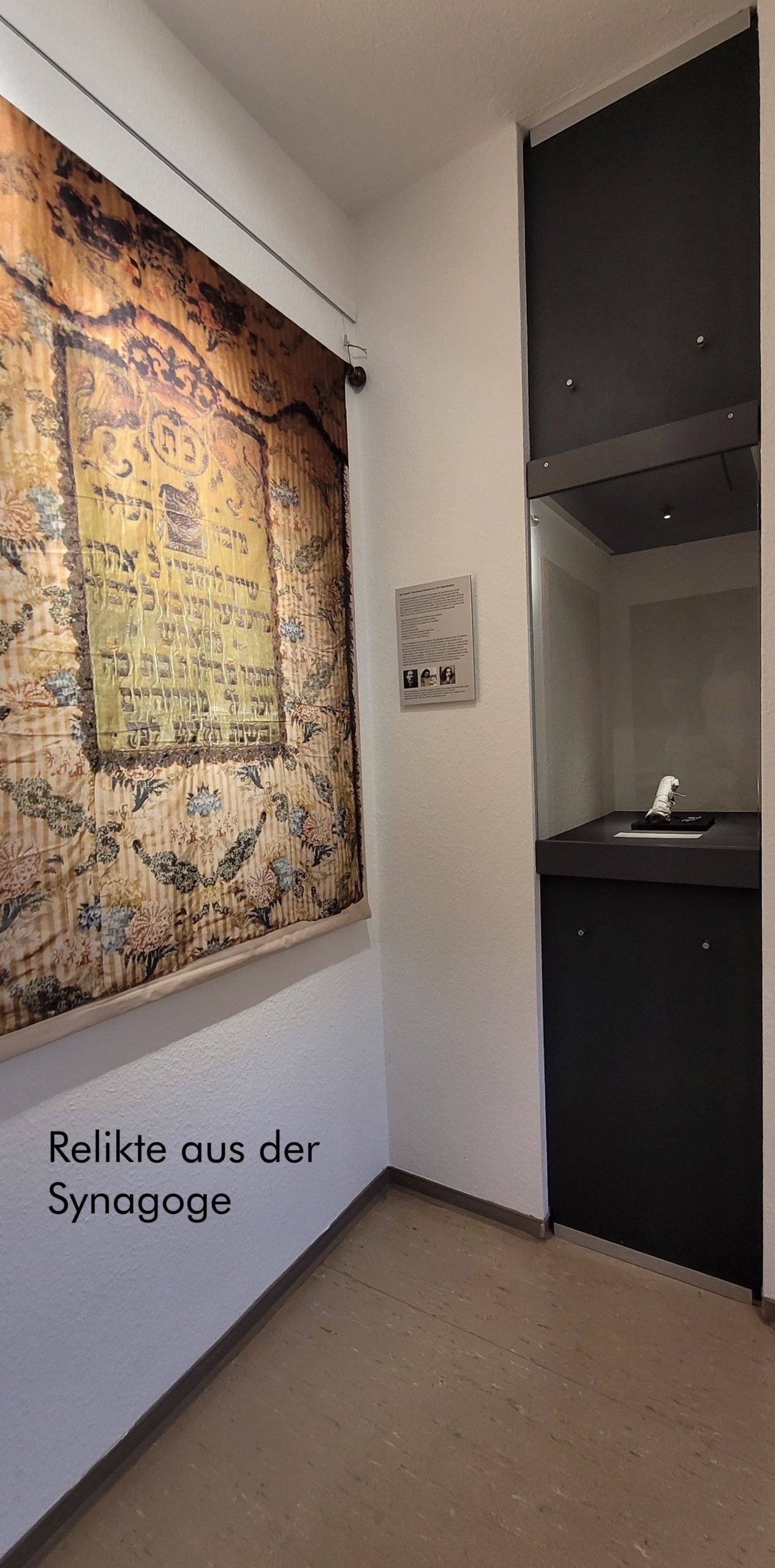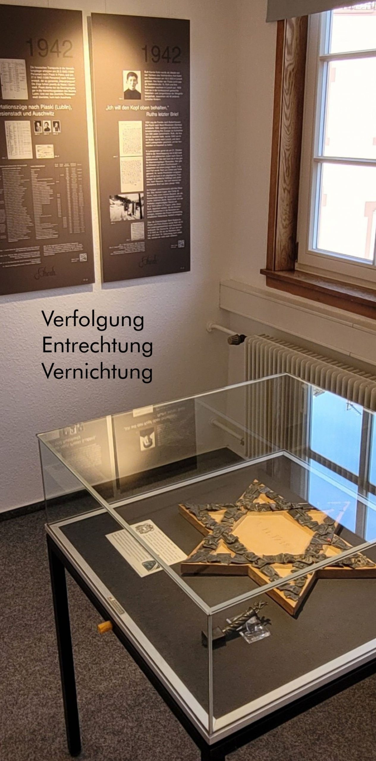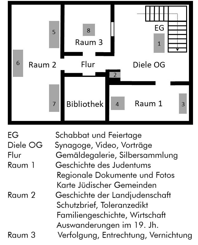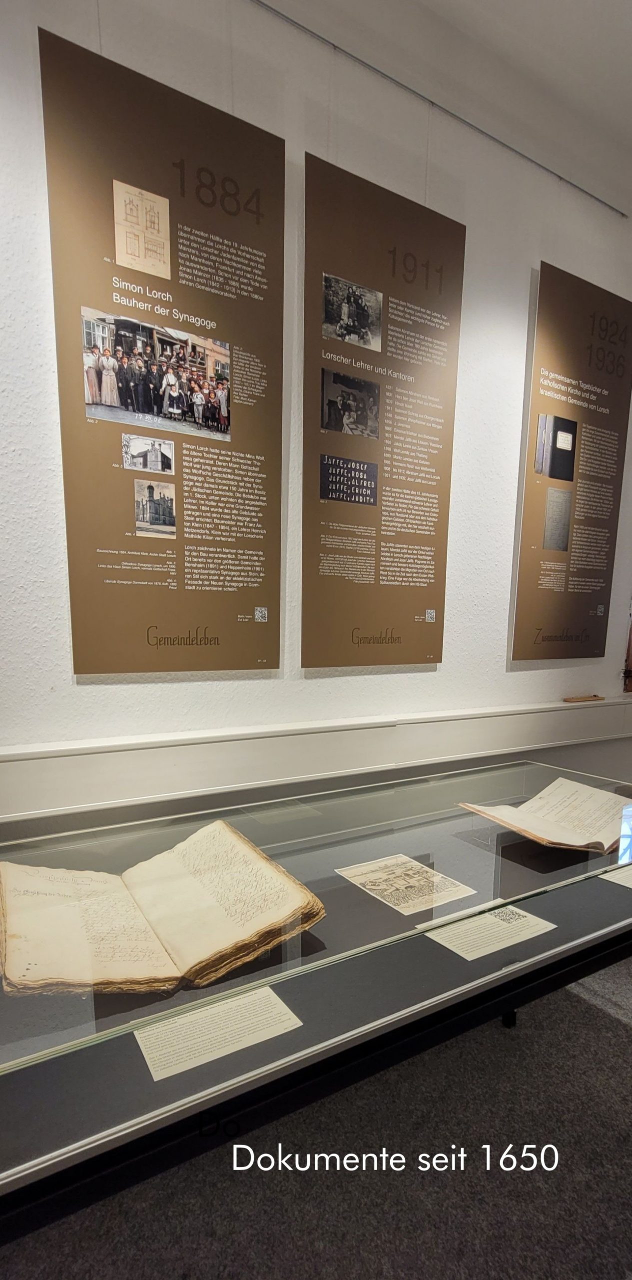 Die Dokumentation stellt das regionale Landjudentum in den Kontext gesamtjüdischer Geschichte. Auf 100 m² werden Originaldokumente und Objekte aus dem jüdischen Alltagsleben gezeigt. 40 Schautafeln mit Fotos und Faksimiles und digitale Präsentationen erzählen die Geschichte unserer früheren jüdischen Nachbarn aus Lorsch und der Region.