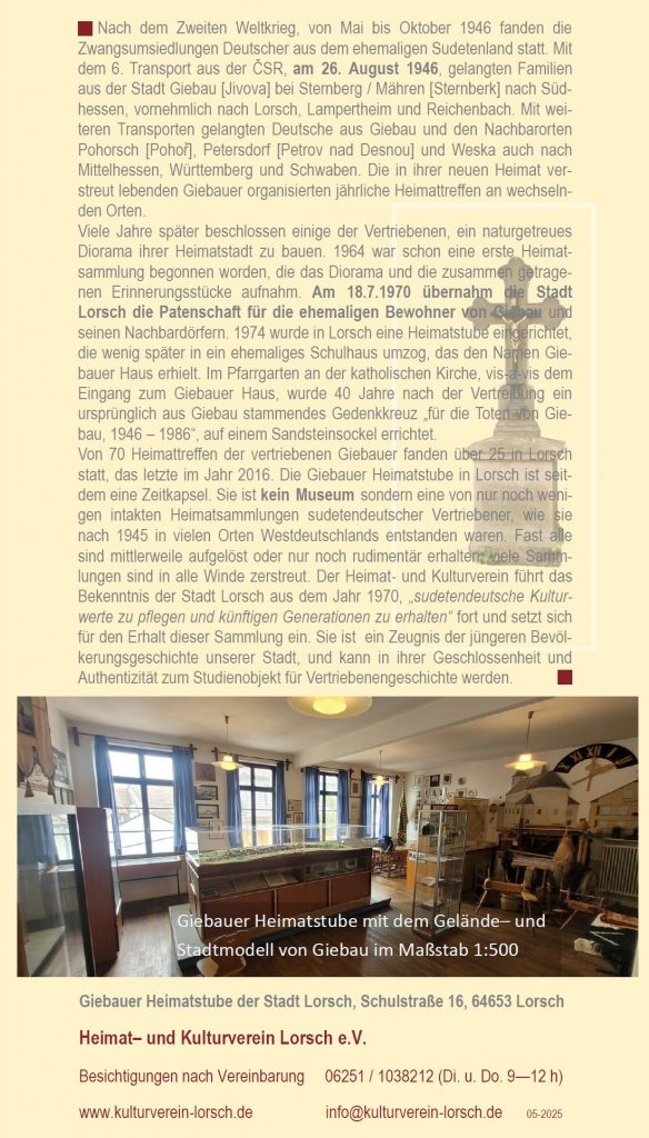 Herzlichen Dank dem Sudetendeutschen Museum in München für die freundliche Gestattung das wunderbare 3D Modell der Lorscher Giebauer Heimatstube, das das Museum erstellt hat, auf unserer Homepage verlinken zu dürfen: